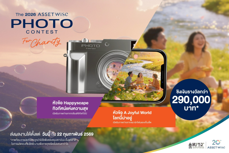 แอสเซทไวส์ ร่วมกับ สมาคมถ่ายภาพแห่ งประเทศไทยในพระบรมราชูปถัมภ์ และ สถาบันมะเร็งแห่งชาติ เปิดพื้ นที่ให้ “ความสุข” ถูกบันทึกผ่ านมุมมองของช่างภาพทั่วประเทศ กับโครงการประกวดภาพถ่าย The 2026 ASSETWISE PHOTO CONTEST FOR CHARITY ชวนทั้งมืออาชีพและผู้ ที่ชื่นชอบการถ่ายภาพ มาร่วมเล่ าเรื่องความน่าอยู่ของโลกใบนี้ ผ่านภาพถ่ายที่เปี่ยมไปด้ วยความหมาย ดูแล้ว…ยิ้มได้ อบอุ่นใจ และมีคุณค่า พร้อมชิงเงินรางวั ลรวมมูลค่ากว่า 290,000บาท โดยผลงานที่ได้รับคัดเลื อกจะนำไปใช้สนับสนุนภารกิ จของสถาบันมะเร็งแห่งชาติต่อไป ส่งผลงานได้ ตั้งแต่วันนี้ – 22 กุมภาพันธ์ 2569 (ปิดระบบรับภาพเวลา 23.59 น.)