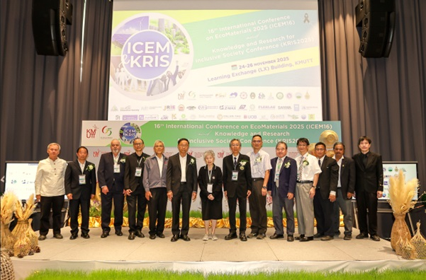 เมื่อเร็วๆนี้ คณะวิทยาศาสตร์ มหาวิทยาลัยเทคโนโลยีพระจอมเกล้าธนบุรี (มจธ.) จัดการประชุมวิชาการนานาชาติด้านวัสดุเป็นมิตรต่อสิ่งแวดล้อม ครั้งที่ 16 (16th International Conference on EcoMaterials 2025 : ICEM16) โดยมีพิธีเปิดร่วมกับการประชุมวิชาการเรื่อง“ความรู้และการวิจัยเพื่อสังคมที่เท่าเทียม” (Knowledge and Research for Inclusive Society Seminar : KRIS) เพื่อเป็นเวทีแลกเปลี่ยนองค์ความรู้ การถอดบทเรียนจากการทำงานวิจัยเพื่อชุมชน ตลอดจนการสร้างเครือข่ายความร่วมมือระหว่างนักวิจัย นักวิชาการ ภาครัฐ เอกชน และชุมชน ณ อาคารการเรียนรู้พหุวิทยาการ มจธ. กรุงเทพฯ