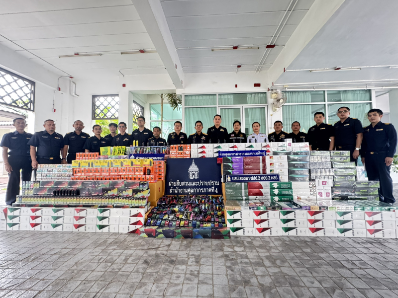 ศุลกากรภาคที่ 4 เดินหน้าปราบเข้มบุหรี่ไฟฟ้าและบุหรี่ผิดกฎหมายภาคใต้ฝั่งตะวันออก ผลการปราบปรามในปีงบประมาณ 2568 สะท้อนความสำเร็จอย่างเป็นรูปธรรม ตอกย้ำความจริงจังของภาครัฐในการคุ้มครองสุขภาพประชาชน ปราบทุจริต และลดความสูญเสียทางเศรษฐกิจ พร้อมสานต่อแนวนโยบาย เพื่อปกป้องสังคมไทยจากภัยบุหรี่ไฟฟ้าและบุหรี่ผิดกฎหมายอย่างยั่งยืน