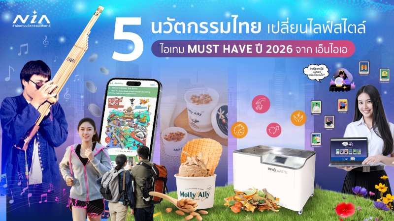 สำนักงานนวัตกรรมแห่งชาติ (องค์การมหาชน) หรือ NIA เชื่อมั่นว่า “นวัตกรรม” คือพลังบวกที่จะขับเคลื่อนเศรษฐกิจและสังคมไทยไปข้างหน้าอย่างยั่งยืน และการเดินทางในปี 2569 คือโอกาสสำคัญที่เราจะเปลี่ยนแปลงชีวิตไปสู่ทิศทางที่ดีกว่า โดยอาศัยพลังของนวัตกรรมฝีมือคนไทยที่ได้รับการส่งเสริมและสนับสนุนโดย NIA ซึ่งแต่ละนวัตกรรมล้วนเข้ามาช่วยเป็นเครื่องมือนำพาเราไปสู่คุณภาพชีวิตที่ดีขึ้น ช่วยผลักดันให้เป้าหมายในปีใหม่ของเรา ไม่ว่าจะเป็นสุขภาพที่แข็งแรงขึ้น การร่วมสร้างสิ่งแวดล้อมที่ดีขึ้น จิตใจที่เข้มแข็งขึ้น และไลฟ์สไตล์ที่สมดุลขึ้น ให้สามารถเป็นจริงขึ้นมาได้