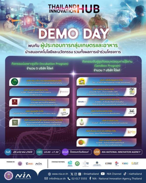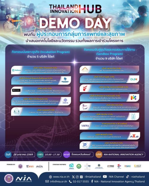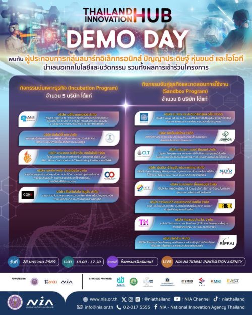 เตรียมพบกับทีมผู้ชนะจากเวที THAILAND INNOVATION HUB – DEMO DAY 2025 เวทีที่รวมสุดยอดนวัตกรรมเพื่อแก้โจทย์จริงใน 3 อุตสาหกรรมเป้าหมาย และยกระดับขีดความสามารถในการแข่งขันของประเทศ