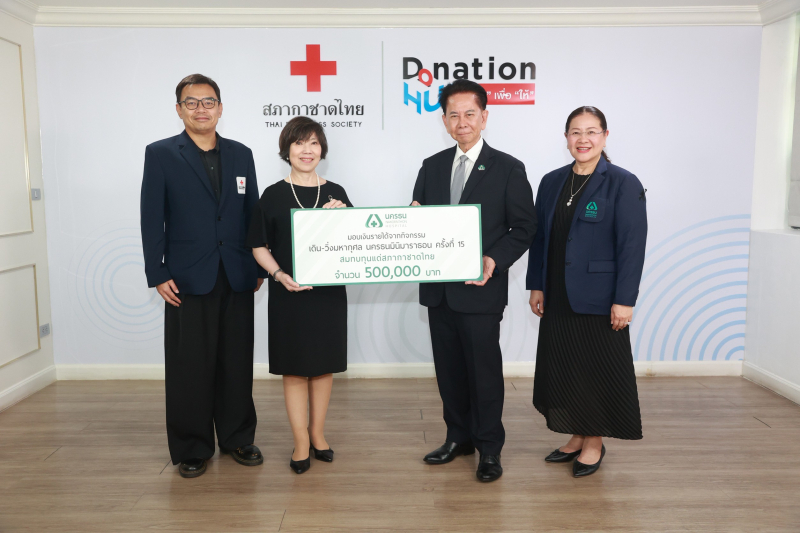 รศ.ญาณเดช ทองสิมา (ที่ 2 จากขวา) ประธานกรรมการบริษัท พร้อมด้วยนางสาวเยาวเรศ ทองสิมา (ขวา) ผู้อำนวยการสายงานบริหาร บริษัท โรงพยาบาลนครธน จำกัด (มหาชน) (NKT) มอบเงินรายได้จากการจัดกิจกรรมเดิน-วิ่งมหากุศล นครธนมินิมาราธอน ครั้งที่ 15 ภายใต้แนวคิด “วิ่งด้วยความรัก เพื่อสภากาชาดไทย : Save The World” จำนวน 500,000 บาท โดยมีนางจันทร์ประภา วิชิตชลชัย (ที่ 2 จากซ้าย) รองผู้อำนวยการสำนักงานจัดหารายได้ สภากาชาดไทย ให้เกียรติเป็นผู้รับมอบในครั้งนี้ เพื่อสมทบทุนให้กับโครงการเงินทุนฉุกเฉิน เพื่อช่วยเหลือผู้ประสบภัยพิบัติ ซึ่งเป็นหนึ่งในพันธกิจหลักของสภากาชาดไทย ในการช่วยเหลือบรรเทาทุกข์ ผู้ประสบภัยพิบัติทั่วประเทศให้ได้อย่างรวดเร็ว และงานดังกล่าวจัดขึ้น ณ สำนักงานจัดหารายได้ สภากาชาดไทย เมื่อเร็วๆ นี้