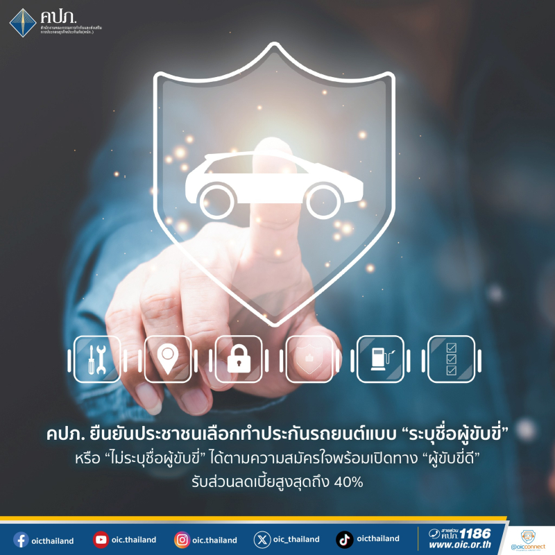 “สำนักงาน คปภ. ยืนยันว่า การออกคำสั่งนายทะเบียนที่ 46/2567 ไม่ได้เป็นการจำกัดสิทธิเสรีภาพของประชาชนในการ เข้าทำสัญญาหรือการใช้ทรัพย์สินของตนเองแต่อย่างใด ประชาชนผู้เอาประกันภัยทุกรายยังคงสามารถเลือกทำกรมธรรม์ประกันภัยรถยนต์ทั้งแบบระบุชื่อและไม่ระบุชื่อผู้ขับขี่ ได้ตามความเหมาะสมกับลักษณะการใช้รถยนต์ของแต่ละบุคคล อย่างไรก็ดี ในกรณีที่เลือกทำกรมธรรม์ประกันภัยรถยนต์แบบระบุชื่อผู้ขับขี่ ผู้เอาประกันภัยที่มีประวัติการขับขี่ดีจะได้รับส่วนลดเบี้ยประกันภัยทันที อันเป็นการจ่ายเบี้ยประกันภัยอย่างเป็นธรรมและสอดคล้องกับความเสี่ยงที่แท้จริง”