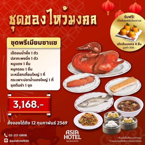 ตรุษจีนปีนี้ของไหว้ต้องเริ่ด! บมจ. เอเชีย โฮเต็ล (ASIA) จัดเซ็ตของคาวหวานครบสูตรมงคล!! รังสรรค์โดยเชฟมืออาชีพจากวัตถุดิบชั้นเลิศ มีให้เลือกทั้ง พรีเมียมซาแช ราคา 3,168 บาท และ ชุดซาแซ 1,888 บาท เปิดกล่องมาเจอทั้งเป็ดอบน้ำผึ้ง หมูแดง หมูกรอบ ปลากะพง… ยังไม่หมดแค่นั้นเพราะยังมีของหวานมงคลความหมายดีอย่าง เค้กส้มมงคล ขนมทองก้อน ซิ่วท้อ และขนมปุยฝ้าย เห็นแค่รายชื่อก็รู้สึกเฮงแล้ว!….ใครไม่อยากพลาด แนะนำให้รีบจองก่อน 12 กุมภาพันธ์นี้ โทร. 02-217-0808 หรือ LINE : @asiahotelbkk สามารถรับของช่วง 13–16 กุมภาพันธ์ 2569 ที่ ห้องอาหารแอมเบอร์ ชั้น 1 โรงแรมเอเชีย กรุงเทพ…..งานนี้นอกจากเสริมสิริมงคลให้ลูกค้าแล้ว ยังเป็นอีกหนึ่งกลยุทธ์สร้างรายได้ช่วงตรุษจีน เรียกว่าเฮงทั้งคนไหว้ และปังทั้งยอดขายเลยคร้าา…