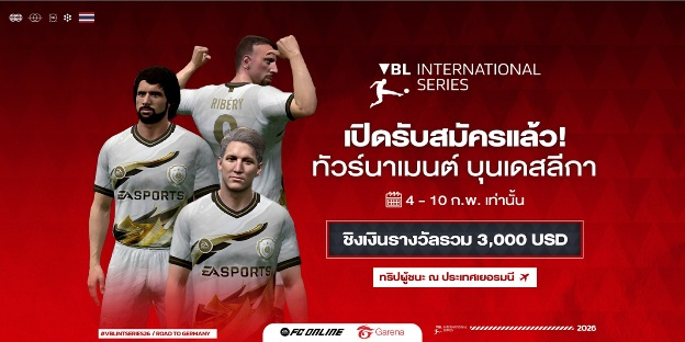 FC Online เกมฟุตบอลระดับโลกยอดนิยมอันดับหนึ่งในประเทศไทย ตอกย้ำความสัมพันธ์อันแน่นแฟ้นกับลีกฟุตบอลชั้นนำระดับโลกอย่าง “บุนเดสลีกา (Bundesliga)” ประกาศเปิดตัวทัวร์นาเมนต์ครั้งสำคัญ VBL International Series 2026 อย่างเป็นทางการ เชิญชวนเหล่าเพลเยอร์ชาวไทยพิสูจน์ฝีมือบนเส้นทางอีสปอร์ตระดับประเทศ ชิงเงินรางวัลรวมกว่า 3,000 ดอลลาร์สหรัฐ พร้อมรางวัลสุดเอ็กซ์คลูซีฟ “ทริปผู้ชนะ (Winner Trip)” บินลัดฟ้าเปิดประสบการณ์ฟุตบอลระดับโลก ณ ประเทศเยอรมนี