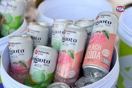 นอกจากความอิ่มบุญแล้ว TOA ยังได้ร่วมออกบูธกิจกรรมเพื่อเติมพลังความสดชื่นให้แก่นักวิ่งและผู้ร่วมงาน ด้วยเครื่องดื่ม “ฮอกไกโด มิโกโตะ” (Hokkaido Migoto) เครื่องดื่มโซดาสไตล์ญี่ปุ่นระดับพรีเมียม ทั้งกลิ่นเมลอนและกลิ่นพีช ซึ่งเป็นสูตรปราศจากน้ำตาล (Zero Sugar) แคลอรี่ต่ำ สอดรับกับเทรนด์การดูแลสุขภาพของคนรุ่นใหม่และบรรยากาศการออกกำลังกายที่ใส่ใจสิ่งแวดล้อม