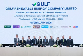 นายบัณฑิต สะเพียรชัย ประธานกรรมการบริหาร และนายชลัช รัตนบุญนิธิ กรรมการผู้จัดการ ธนาคารเพื่อการส่งออกและนำเข้าแห่งประเทศไทย (EXIM BANK) พร้อมด้วยผู้บริหาร EXIM BANK เข้าร่วมพิธีลงนามสัญญาให้การสนับสนุนทางการเงินแก่บริษัท กัลฟ์ ดีเวลลอปเมนท์ จำกัด (มหาชน) ร่วมกับจากสถาบันการเงินชั้นนำทั้งในและต่างประเทศ เพื่อพัฒนาโครงการโรงไฟฟ้าพลังงานหมุนเวียนในประเทศไทย กำลังการผลิตรวม 939 เมกะวัตต์ ประกอบด้วย โรงไฟฟ้าพลังงานแสงอาทิตย์ (Solar Farm) โรงไฟฟ้าพลังงานแสงอาทิตย์พร้อมแบตเตอรี่ (Solar BESS) และโรงไฟฟ้าขยะอุตสาหกรรม (Waste to Energy) เพื่อจำหน่ายไฟฟ้าให้แก่การไฟฟ้าฝ่ายผลิตแห่งประเทศไทยและการไฟฟ้าส่วนภูมิภาค ภายในปี 2570 ณ โรงแรมคอนราด เมื่อเร็ว ๆ นี้