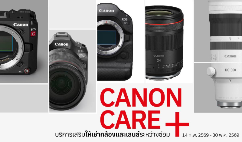 กรุงเทพฯ 16 กุมภาพันธ์ 2569 – “คิวแน่น ทั้งออกทริป ไปงานอีเวนต์ และรับงานถ่ายภาพรับปริญญา แต่กล้องดันเข้าศูนย์ ทำยังไงดี?” … ไม่ต้องเครียด! แคนนอน เข้าใจดีว่างานของทุกคนรอไม่ได้ มอบขอเสนอโปรโมชัน Canon CARE+ บริการส่งซ่อมกล้องด่วน พร้อมบริการเสริมให้เช่าอุปกรณ์ถ่ายภาพระหว่างซ่อม ฟรีค่ามัดจำ เพื่อให้ช่างภาพได้ทำงานได้แบบไม่สะดุด รับงานต่อได้ทันที ตอบโจทย์ลูกค้ากลุ่มช่างภาพมืออาชีพ นักท่องเที่ยวต่างชาติ และลูกค้าทั่วไปที่มีความจำเป็นต้องใช้กล้องในช่วงวันหยุดยาว หรือกลางปีที่มีงานอีเว้นท์มากมาย โดยลูกค้าที่ส่งซ่อมอุปกรณ์ถ่ายภาพประกันศูนย์ของแคนนอน สามารถใช้บริการเช่าอุปกรณ์ได้ตั้งแต่วันที่ 14 กุมภาพันธ์ – 29 พฤษภาคม 2569 ณ ศูนย์บริการแคนนอน สำนักงานใหญ่ (อาคารสาทรสแควร์ กรุงเทพฯ)