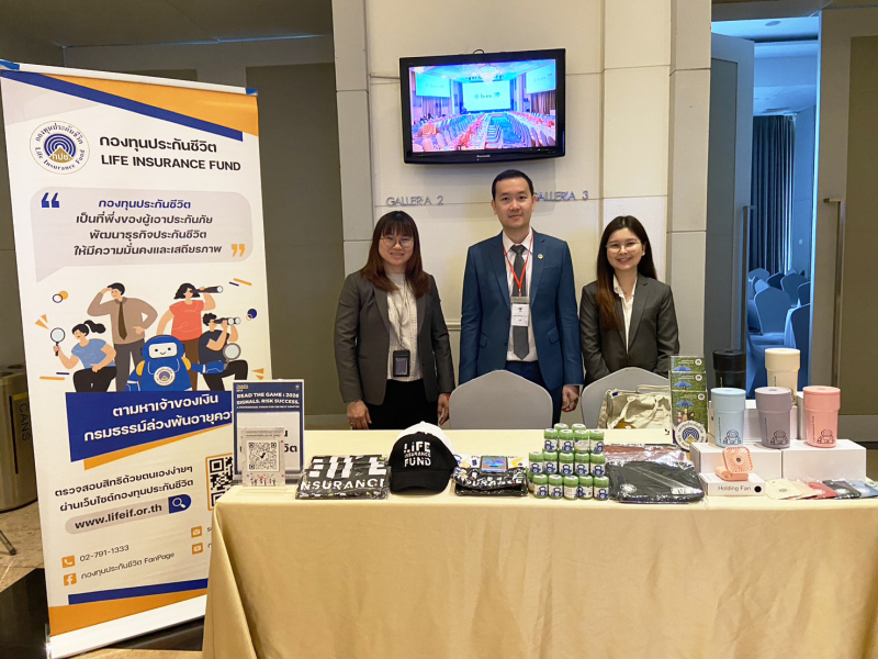 เมื่อวันที่ 17 กุมภาพันธ์ 2569 กองทุนประกันชีวิตเข้าร่วมงานสัมมนาวิชาการ THAIFA BOOSTER CLUB EP.9 ซึ่งเป็นการสัมมนาให้ความรู้สำหรับตัวแทน ผู้นำตัวแทน และผู้บริหารงานขายในธุรกิจประกันชีวิต ณ โรงแรม S31 สุขุมวิท กรุงเทพฯ ซึ่งกองทุนประกันชีวิตได้รับเกียรติจากคุณประภาพร ลิขสิทธิ์ นายกสมาคมตัวแทนประกันชีวิตและที่ปรึกษาการเงิน เชิญกองทุนประกันชีวิตร่วมขึ้นเวทีบรรยายให้ความรู้เกี่ยวกับบทบาทหน้าที่ และภารกิจของกองทุนประกันชีวิตและเงินกรมธรรม์ล่วงพ้นอายุความที่เป็นสิทธิประโยชน์ของผู้เอาประกันแก่ผู้เข้าร่วมสัมมนา โดยนายนพพล เบี้ยวไข่มุข รักษาการผู้จัดการกองทุนประกันชีวิตได้มอบหมายให้ นายกรัณย์ทัศ รักษ์ธรรมกิจ รักษาการหัวหน้าส่วนกลยุทธ์และส่งเสริมประชาสัมพันธ์เป็นผู้บรรยายให้ความรู้ในครั้งนี้ เพื่อให้ผู้เข้าร่วมสัมมนาสามารถนำความรู้ที่ได้ไปเผยแพร่ให้แก่ผู้เอาประกันทราบอย่างเป็นวงกว้างมากยิ่งขึ้น นอกจากนี้ยังมีกิจกรรมออกบูธประชาสัมพันธ์ร่วมตอบแบบสอบถามความรู้เกี่ยวกับกองทุนประกันชีวิตเพื่อรับของที่ระลึกจากกองทุนประกันชีวิตอีกด้วย