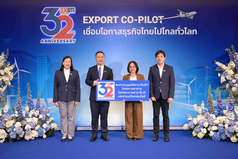 คุณณัฎฐา มะเดื่อ ผู้จัดการฝ่ายการเงินอาวุโส (ที่ 2 จากขวา) บริษัท เด็มโก้ จำกัด (มหาชน) (DEMCO) เป็นตัวแทนร่วมแสดงความยินดีกับ นายชลัช รัตนบุญนิธิ (ที่ 2 จากซ้าย) กรรมการผู้จัดการ ธนาคารเพื่อการส่งออก และนําเข้าแห่งประเทศไทย (EXIM BANK) เนื่องในโอกาสครบรอบ 32 ปี พร้อมร่วมสมทบทุน เพื่อสาธารณประโยชน์กับมูลนิธิรามาธิบดีฯ ในโครงการอาคาร โรงพยาบาลรามาธิบดีและย่านนวัตกรรมโยธี เพื่อเพิ่มศักยภาพและคุณภาพการให้บริการทางการแพทย์ให้เข้าถึงประชาชน พร้อมรองรับสถานการณ์ความไม่แน่นอนของโรคในปัจจุบัน และในอนาคต ซึ่งงานดังกล่าวจัดขึ้น ณ ห้องประชุมชั้น Lobby อาคารเอ็กซิม สำนักงานใหญ่ เมื่อเร็วๆ นี้