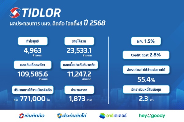 นางอาฑิตยา พูนวัตถุ ผู้บริหารด้านธุรกิจนายหน้าประกันภัย บริษัท เงินติดล้อ จำกัด (มหาชน) บริษัทในกลุ่ม Tidlor Holdings หรือ TIDLOR เปิดเผยว่า ในปี 2568 ธุรกิจนายหน้าประกันภัยของกลุ่มบริษัทเติบโตอย่างแข็งแกร่งและต่อเนื่อง โดยมียอดเบี้ยประกันวินาศภัยรวม 11,247.2 ล้านบาท เพิ่มขึ้น 10.5% (YoY) ซึ่งเติบโตสูงกว่าภาพรวมของอุตสาหกรรมนายหน้าประกันวินาศภัยที่เติบโตเฉลี่ยราว 3% ความสำเร็จนี้เป็นผลมาจากการมีระบบนิเวศทางธุรกิจที่แข็งแกร่ง (TIDLOR Ecosystem) ช่วยให้สามารถเข้าถึงและตอบโจทย์ความต้องการของลูกค้าได้ครอบคลุมทุกกลุ่ม
