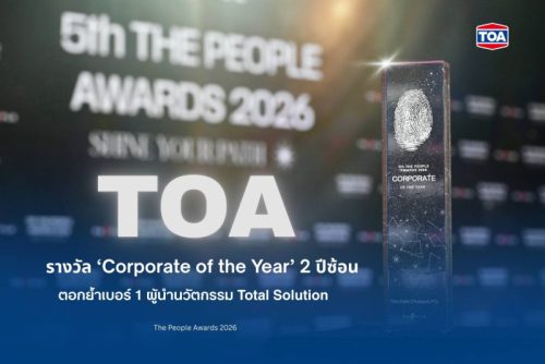 บริษัท ทีโอเอ เพ้นท์ (ประเทศไทย) จำกัด (มหาชน) หรือ TOA ตอกย้ำความเป็นผู้นำตลาดสี และวัสดุเคลือบผิวอันดับ 1 รวมถึงเคมีภัณฑ์ก่อสร้างในประเทศไทย และเอเชียตะวันออกเฉียงใต้ ประกาศความสำเร็จครั้งยิ่งใหญ่ด้วยการคว้ารางวัลเกียรติยศ ‘Corporate of the Year’ ในสาขา ‘Living & Property’ ต่อเนื่อง 2 ปีซ้อน จากเวที The People Awards ครั้งที่ 5 ประจำปี 2026 ภายใต้แนวคิด “Shine Your Path: เปล่งประกายบนเส้นของตัวเอง” สะท้อนความมุ่งมั่นขององค์กรที่ไม่หยุดนิ่งในการทรานส์ฟอร์มธุรกิจสู่การเป็นคู่คิดด้านการอยู่อาศัยแบบครบวงจร (Total Solution for Living) เพื่อยกระดับคุณภาพชีวิตของผู้บริโภคยุคใหม่อย่างแท้จริง