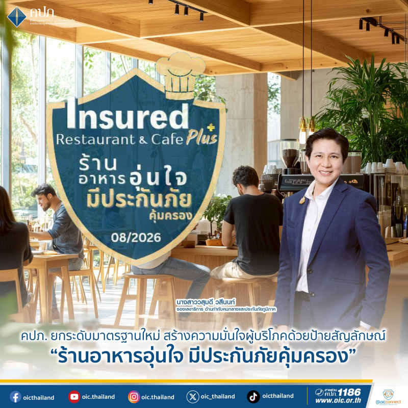 สำนักงาน คปภ. เผย. แนวคิดการยกระดับมาตรฐานร้านอาหารไทยสู่ “ความมั่นใจในทุกมื้อและอุ่นใจทุกครั้งที่ใช้บริการ” ผ่านโครงการ “ร้านอาหารอุ่นใจ มีประกันภัยคุ้มครอง” เพื่อส่งเสริมให้ผู้ประกอบการร้านอาหารนำระบบประกันภัยมาใช้เป็นเครื่องมือบริหารความเสี่ยง รองรับเหตุไม่คาดคิดที่อาจเกิดขึ้นกับผู้ใช้บริการ พร้อมสร้างหลักประกันความอุ่นใจให้กับผู้บริโภค