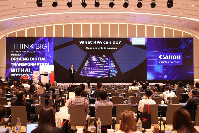 บริษัท แคนนอน มาร์เก็ตติ้ง (ไทยแลนด์) จำกัด (CANON) ผู้นำด้านเทคโนโลยีอิมเมจจิ้งระดับโลก จัดงานสัมมนาเชิงธุรกิจ “THINK BIG” ครั้งแรกในเขตภาคเหนือ ภายใต้แนวคิด Driving Digital Transformation with AI ณ เดอะแม่ปิง แกรนด์บอลรูม โรงแรมอินเตอร์คอนติเนนตัล เชียงใหม่ โดยได้รับเกียรติจากนายชัยณรงค์ นันตาสาย ปลัดจังหวัดเชียงใหม่ร่วมเป็นประธานในพิธีเปิด พร้อมเยี่ยมชมบูธเทคโนโลยีและโซลูชันเพื่อการจัดการธุรกิจรูปแบบใหม่ ซึ่งได้รับความสนใจจากบรรดาองค์กรธุรกิจและหน่วยงานชั้นนำในพื้นที่เข้าร่วมงานอย่างคับคั่ง การจัดงานครั้งนี้ยังสะท้อนถึงกลยุทธ์ของแคนนอนในการส่งมอบนวัตกรรมประสิทธิภาพสูง เพื่อขับเคลื่อนธุรกิจและองค์กรส่วนภูมิภาคทุกระดับ ให้เดินหน้าสู่การทำงานยุคดิจิทัลอย่างเต็มศักยภาพและคุ้มค่าสูงสุด