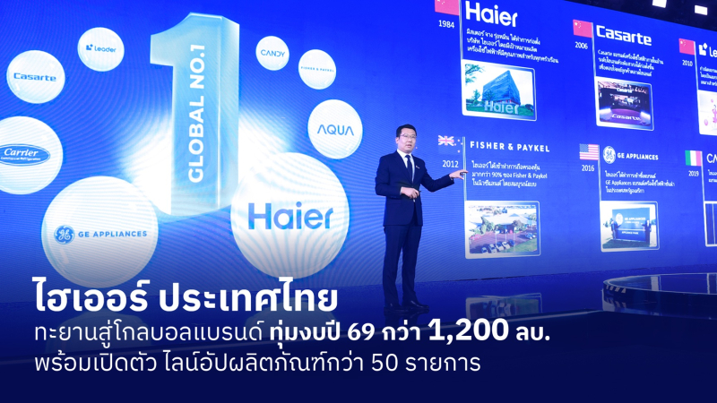 ไฮเออร์ (ประเทศไทย) ผู้นำด้านผลิตภัณฑ์และนวัตกรรมเครื่องใช้ไฟฟ้าระดับโลกและแบรนด์เครื่องใช้ไฟฟ้าอันดับ 1 ของโลกติดต่อกัน 17 ปีซ้อน เดินหน้ารุกตลาดปี 2569 อัดงบลงทุนกว่า 1,200 ล้านบาท เร่งขยายเครือข่ายการจัดจำหน่ายทั่วประเทศ ครอบคลุมทั้งดีลเลอร์ โมเดิร์นเทรด และออนไลน์ เพื่อเพิ่ม การเข้าถึงผู้บริโภคในทุกพื้นที่ พร้อมกันนี้ ยังเปิดตัวไลน์อัปผลิตภัณฑ์ใหม่ที่ขับเคลื่อนด้วย AI ครบทุกหมวดสินค้ากว่า 50 รายการ เพื่อยกระดับสู่ Smart Ecosystem ที่เชื่อมต่อทุกการใช้ชีวิตอย่างไร้รอยต่อ ควบคู่กับการเสริมความแข็งแกร่งของแบรนด์ในประเทศไทยผ่านกิจกรรมทางการตลาดอย่างต่อเนื่อง พร้อมต่อยอดสู่การเป็น Global Brand อย่างยั่งยืน โดยตั้งเป้ารายได้รวมปี 2569 เติบโต 25% หรือราว 14,000 ล้านบาท