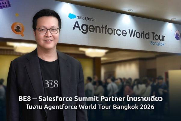 บริษัท เบริล 8 พลัส จำกัด (มหาชน) หรือ BE8 ผู้เชี่ยวชาญด้าน AI-Powered Digital Transformation เข้าร่วมงาน Agentforce World Tour Bangkok 2026 งานแสดงเทคโนโลยีและธุรกิจระดับโลกของ Salesforce โดย BE8 เป็นตัวแทนจากไทยเพียงรายเดียวในระดับ Summit Partner ที่เข้าร่วมงานครั้งนี้ สะท้อนบทบาท ของ BE8 ในการขับเคลื่อน AI-Powered Digital Transformation ในประเทศไทยและภูมิภาค