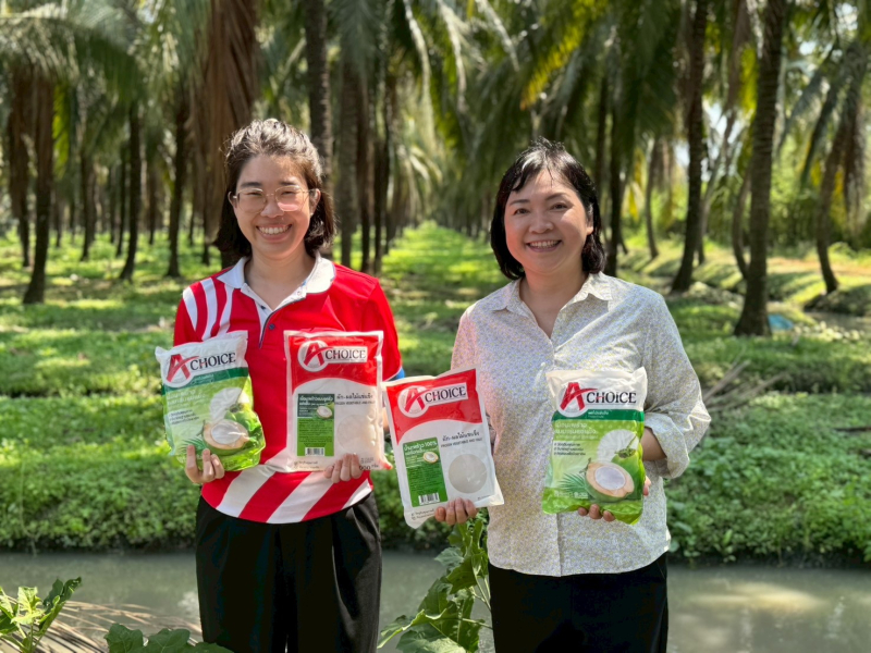 มะพร้าวน้ำหอมของเกษตรกรรายนี้ นอกจากดูแลการปลูกอย่างพิถีพิถันแล้ว ยังนำเข้าสู่กระบวนการแปรรูปสู่ผลิตภัณฑ์แช่แข็ง รองรับความต้องการใช้เป็นวัตถุดิบในธุรกิจอาหาร