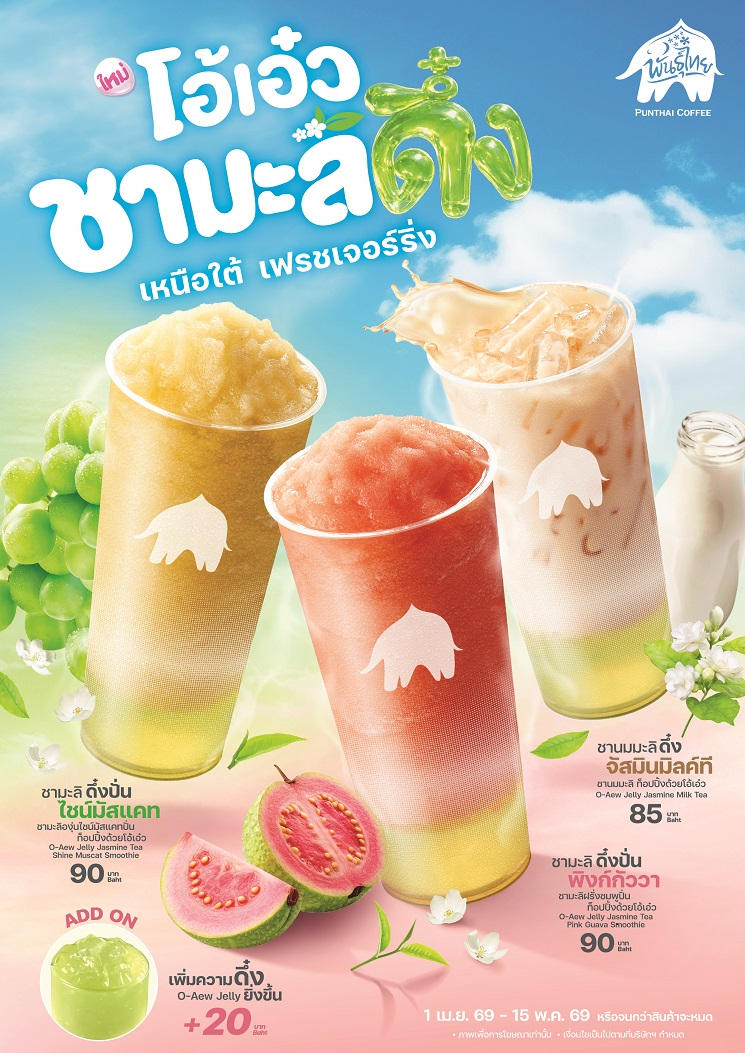 พิเศษ! เพิ่มเพียง 20.- ก็ Add on โอ้เอ๋วได้แบบจุกๆ มาร่วมพิสูจน์ความอร่อย สดชื่น และสนุกไปกับสเต็ปความดึ๋งได้ตั้งแต่วันที่ 1 เมษายน 2569 – 15 พฤษภาคม 2569 (หรือจนกว่าสินค้าจะหมด) ที่ร้านพันธุ์ไทยทุกสาขาที่ร่วมรายการ และเดลิเวอรีจัดส่งความดึ๋งถึงบ้าน ติดตามความเคลื่อนไหวได้ที่ www.facebook.com/punthaicoffee และ www.tiktok.com/@punthai_coffee_official