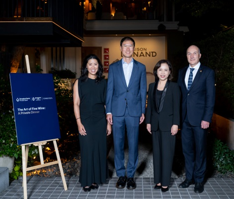กรุงเทพประกันชีวิต ร่วมกับ ไพรเวทแบงก์ ธนาคารกรุงเทพ และคริสตีส์ ประเทศไทย เชิญลูกค้าไพรเวทแบงก์ ธนาคารกรุงเทพ ร่วมสัมผัสค่ำคืนสุดพิเศษกับงาน “The Art of Fine Wine: A Private Dinner” ประสบการณ์ Fine Dining และ Wine Pairing ระดับเวิลด์คลาส ที่รังสรรค์ขึ้นอย่างพิถีพิถันเพื่อมอบช่วงเวลาอันน่าจดจำ ไฮไลต์ของค่ำคืนนี้คือการนำเสนอไวน์ชั้นเลิศโดย Tim Triptree ผู้อำนวยการฝ่ายไวน์และสุราระดับนานาชาติของ Christie’s ผู้ถ่ายทอดเรื่องราวและศิลปะแห่งไวน์ผ่านการจับคู่รสชาติอย่างลงตัวกับแต่ละเมนู ภายในบรรยากาศสุดเอ็กซ์คลูซีฟ ณ Maison Dunand แขกผู้ร่วมงานจะได้ดื่มด่ำกับประสบการณ์แห่งรสชาติที่ออกแบบมาอย่างประณีต เพื่อยกระดับทุกสัมผัสของการรับประทานอาหารและการดื่มไวน์อย่างสมบูรณ์แบบ โดยมี โชน โสภณพนิช กรรมการผู้จัดการใหญ่และประธานเจ้าหน้าที่บริหาร บริษัท กรุงเทพประกันชีวิต จำกัด (มหาชน) วรพร วิทยะสิรินันท์ ผู้ช่วยผู้จัดการใหญ่ Wealth & Private Bank ธนาคารกรุงเทพ และ ประภาวดี โสภณพนิช รองประธานระดับอาวุโส กรรมการผู้จัดการคริสตีส์ ประเทศไทย กัมพูชา ลาว พม่า และเวียดนาม (CLMVT) ร่วมให้การต้อนรับ