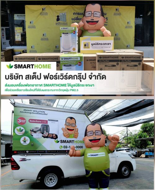 บริษัท สเต็ป ฟอร์เวิร์ด กรุ๊ป จำกัด ผู้จัดจำหน่ายเครื่องใช้ไฟฟ้าภายใต้แบรนด์ SMARTHOME (สมาร์ทโฮม) ส่งมอบเครื่องฟอกอากาศแบรนด์ SMARTHOME ให้แก่มูลนิธิกระจกเงา เพื่อเป็นส่วนหนึ่งในการช่วยเหลือประชาชนในพื้นที่จังหวัดเชียงใหม่และภาคเหนือ ที่กำลังเผชิญกับสถานการณ์วิกฤตฝุ่นละอองขนาดเล็ก PM2.5 ซึ่งส่งผลกระทบต่อสุขภาพในชีวิตประจำวันอย่างต่อเนื่อง โดยเฉพาะในกลุ่มเปราะบางที่ต้องการการดูแลเป็นพิเศษ