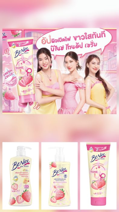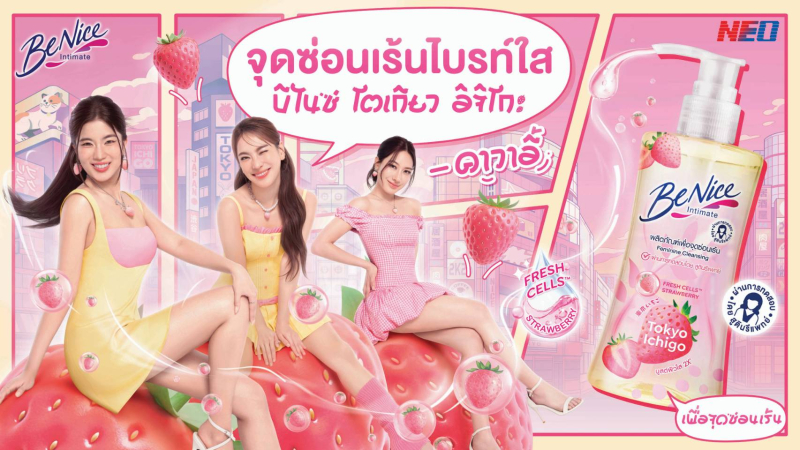 บีไนซ์ (BeNice) ผู้นำผลิตภัณฑ์ทำความสะอาดและบำรุงผิวกาย ภายใต้ บริษัท นีโอ คอร์ปอเรท จำกัด (มหาชน) ยกระดับประสบการณ์ปรนนิบัติผิวให้สนุกและสดใสกว่าที่เคย เปิดตัวซีรีส์ใหม่ล่าสุด “บีไนซ์ โตเกียว อิจิโกะ” (BeNice Tokyo Ichigo Series) ครั้งแรกของการรวมพลังสกินบูสเตอร์ จากเฟรชเซลล์สตรอเบอร์รี่และเบบี้คอลลาเจน มอบผลลัพธ์ผิวขาวอมชมพูแบบสาวญี่ปุ่น พร้อมกลิ่นหอมละมุนติดผิวนานตลอดวัน