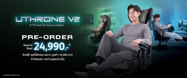 หลังจากสร้างกระแสตอบรับอย่างล้นหลามจากการเปิดตัวบนเวทีการแข่งขันอีสปอร์ต OSIM เดินหน้าต่อยอดความสนใจดังกล่าว ด้วยการเปิดให้ผู้บริโภคได้เป็นเจ้าของ uThrone V2 อย่างเป็นทางการผ่านข้อเสนอพิเศษแบบสั่งจองล่วงหน้า (Pre-Order) ในราคาเริ่มต้นเพียง 24,990 บาท จากราคาปกติ 44,990 บาท พร้อมรับฟรี Ergo Tilt Armrest และ LoungePro Footrest มูลค่ารวมกว่า 10,000 บาท อุปกรณ์เสริมที่ช่วยเพิ่มความยืดหยุ่นและความสบายในการใช้งาน โดยมีจำนวนจำกัดสำหรับลูกค้ากลุ่มแรก เริ่มตั้งแต่วันที่ 20 – 30 เมษายน 2569 เท่านั้น