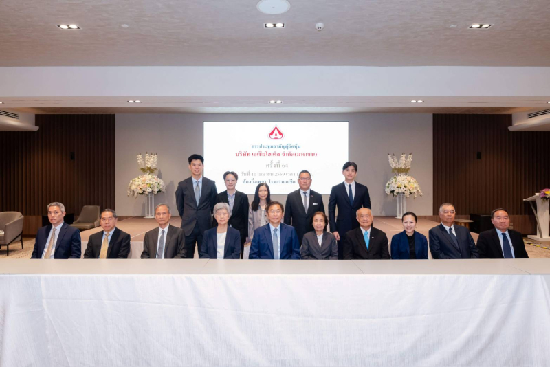 คุณสุรพล เตชะหรูวิจิตร ประธานเจ้าหน้าที่บริหาร, คุณสุรพงษ์ เตชะหรูวิจิตรกรรมการผู้จัดการ และคุณพัชรพล เตชะหรูวิจิตร ผู้ช่วยประธานเจ้าหน้าที่บริหาร บริษัท เอเชียโฮเต็ล จำกัด (มหาชน) หรือ ASIA พร้อมด้วยคณะกรรมการบริษัทฯ ร่วมกันถ่ายภาพเป็นที่ระลึกในงานประชุมสามัญผู้ถือหุ้นประจำปี 2569 โดยที่ประชุมพิจารณาอนุมัติทุกวาระ พร้อมกับมีมติเป็นเอกฉันท์จ่ายปันผลจากผลการดำเนินงานงวดปี 2568 ในอัตราหุ้นละ 0.05 บาท กำหนดจ่ายเงินปันผลในวันที่ 8 พฤษภาคม 2569 พร้อมรายงานและนำเสนอข้อมูลผลการดำเนินงานปี 2568 ให้ผู้ถือหุ้นรับทราบ ซึ่งงานดังกล่าวจัดขึ้น ณ ห้องกิ่งเพชร ชั้น 3 โรงแรมเอเชีย กรุงเทพ เมื่อเร็วๆ นี้