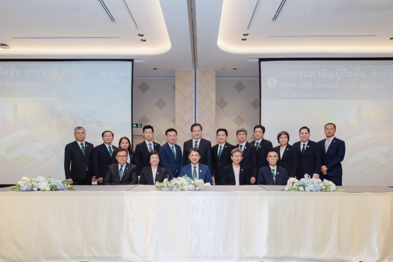 นายธีรนันท์ ศรีหงส์ (แถวนั่งที่ 3 จากขวา) ประธานกรรมการบริษัท พร้อมด้วยนายพิทักษ์ รัชกิจประการ (แถวยืนที่ 5 จากซ้าย) ประธานเจ้าหน้าที่บริหาร และกรรมการผู้จัดการใหญ่ นายรังสรรค์ พวงปราง (แถวยืนที่ 5 จากขวา) ผู้ช่วยกรรมการผู้จัดการใหญ่ และคณะกรรมการ บริษัท พีทีจี เอ็นเนอยี จำกัด (มหาชน) (PTG) ถ่ายภาพร่วมกันในงานประชุมสามัญผู้ถือหุ้นประจำปี 2569 โดยผู้ถือหุ้นมีมติเห็นชอบทุกวาระ พร้อมกันนี้ยังได้อนุมัติการจ่ายเงินปันผลจากกำไรสุทธิประจำปี 2568 ในอัตราหุ้นละ 0.35 บาท คิดเป็นจำนวนเงินรวมทั้งสิ้น 584.5 ล้านบาท กำหนดวันจ่ายเงินปันผล ในวันที่ 15 พฤษภาคม 2569