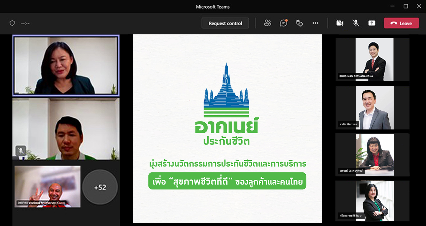 นางภฤตยา สัจจศิลา กรรมการผู้จัดการ บริษัท อาคเนย์ประกันชีวิต จำกัด (มหาชน) ตอกย้ำความเชื่อมั่น จัดประชุมออนไลน์ร่วมกับผู้บริหาร, ผู้จัดการสาขา และ ทีมขายลูกค้าบุคคลธนกิจ ของ ธนาคาร ซีไอเอ็มบี ไทย จำกัด (มหาชน) นำโดย นายสุวดิศ ดิสถาพร ผู้ช่วยกรรมการผู้จัดการใหญ่ บริหารช่องทางการขายธุรกิจรายย่อย ร่วมด้วยนางสาวศรีนวล จารุศิริวัฒนา ผู้บริหารเครือข่ายสาขา นายภูดินันท์ เศรษฐนันท์ ผู้ช่วยกรรมการผู้จัดการใหญ่ พัฒนาผลิตภัณฑ์การเงิน ธุรกิจผลิตภัณฑ์การเงิน และ ผู้บริหารการขายลูกค้าบุคคลธนกิจ และ นางสิตางค์ ประดิษฐพงษ์ ผู้บริหารผลิตภัณฑ์ประกัน พร้อมแถลงนโยบายการสร้างการเติบโตคู่สังคมไทยอย่างยั่งยืน เพื่อความสุขของลูกค้า คู่ค้า ฝ่ายขาย พนักงาน และผู้ถือหุ้น โดยมุ่งสร้างนวัตกรรมการประกันชีวิตและการบริการ เพื่อ “สุขภาพชีวิตที่ดี” ของลูกค้า และคนไทย