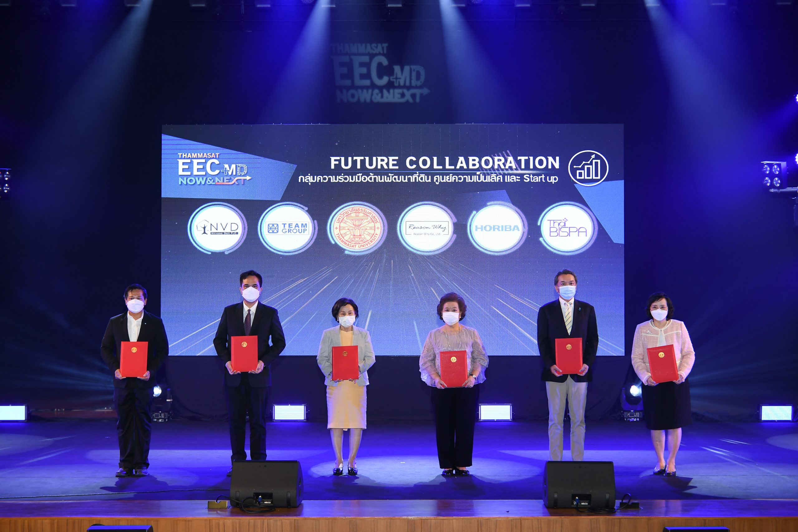 นายสมพัสตร์ สุวพิศ (คนที่ 2 จากซ้าย) กรรมการบริหาร และประธานเจ้าหน้าที่การลงทุน บริษัท ทีม คอนซัลติ้ง เอนจิเนียริ่ง แอนด์ แมเนจเมนท์ จำกัด (มหาชน) หรือ TEAMG ร่วมลงนามความร่วมมือกับมหาวิทยาลัยธรรมศาสตร์และพันธมิตรชั้นนำ 25 องค์กร ขับเคลื่อนเขตส่งเสริมเศรษฐกิจพิเศษภาคตะวันออก ศูนย์นวัตกรรมการแพทย์ครบวงจร มหาวิทยาลัยธรรมศาสตร์ ศูนย์พัทยา บนพื้นที่ 581 ไร่ สู่เป้าหมายของการเป็น Medical Hub ในภูมิภาค ต่อยอดการพัฒนา ศึกษาวิจัย นวัตกรรมการแพทย์มิติใหม่ เพื่อคุณภาพชีวิตที่ดีขึ้นของคนไทย และ สร้าง Medical Valley ให้เกิดขึ้นจริงในประเทศไทย ทั้งนี้ บริษัท เล็งเห็นศักยภาพและโอกาสการพัฒนาระบบนิเวศน์เชิงธุรกิจครบวงจรรองรับการพัฒนานวัตกรรมและอุตสาหกรรมที่เกี่ยวเนื่องกับการแพทย์ครบวงจร เช่น อุตสาหกรรมเครื่องมือแพทย์ เพื่อเป็นจุดหมายของผู้ผลิตเครื่องมือแพทย์ทั้งในและต่างประเทศ ผู้ประกอบการด้านนวัตกรรมและนักวิจัย เพื่อสร้างให้ธุรกิจประสบความสำเร็จ ในเขตส่งเสริมเศรษฐกิจพิเศษ: ศูนย์นวัตกรรมการแพทย์ครบวงจร ธรรมศาสตร์ (พัทยา) ณ ห้อง Theater อุทยานการเรียนรู้ป๋วย 100 ปี มหาวิทยาลัยธรรมศาสตร์ ศูนย์รังสิต เมื่อเร็วๆ นี้