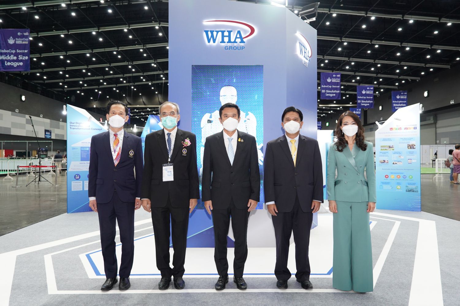 เมื่อเร็ว ๆ นี้ นางสาวจรีพร จารุกรสกุล ประธานคณะกรรมการบริษัท และประธานเจ้าหน้าที่บริหารกลุ่ม บริษัท ดับบลิวเอชเอ คอร์ปอเรชั่น จำกัด (มหาชน) หรือ ดับบลิวเอชเอ กรุ๊ป ให้การต้อนรับ นายชัยวุฒิ ธนาคมานุสรณ์ รัฐมนตรีว่าการกระทรวงดิจิทัลเพื่อเศรษฐกิจและสังคม ผศ. ดร.จักรกฤษณ์ ศุทธากรณ์ คณบดีคณะวิศวกรรมศาสตร์ มหาวิทยาลัยมหิดล และประธานจัดการแข่งขันหุ่นยนต์ระดับโลก World RoboCup 2022 และผู้บริหารของมหาวิทยาลัยมหิดล ในระหว่างการเยี่ยมชมบูธนิทรรศการของดับบลิวเอชเอ กรุ๊ป ในพิธีเปิดการแข่งขันหุ่นยนต์ระดับโลก ครั้งที่ 25 ในฐานะผู้สนับสนุนหลัก นับเป็นการตอกย้ำถึงความมุ่งมั่นของบริษัทฯ ในการส่งเสริมการวิจัยด้านวิทยาการหุ่นยนต์และปัญญาประดิษฐ์ รวมถึงสนับสนุนการพัฒนาทักษะให้แก่บุคลากรด้านไอทีรุ่นใหม่ เพื่อสร้างสรรค์โซลูชันนวัตกรรมช่วยเพิ่มความสามารถในการผลิตและความปลอดภัยในทุกภาคส่วน