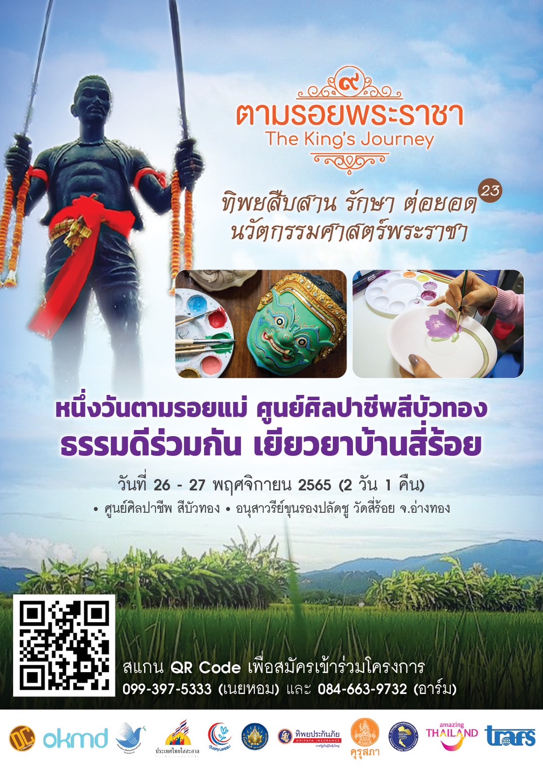 ในวันเสาร์ที่ 26 – วันอาทิตย์ที่ 27 พฤศจิกายน 2565 (2 วัน 1 คืน) ณ ศูนย์ศิลปาชีพ สีบัวทอง และ อนุสาวรียฺขุนรองปลัดชู