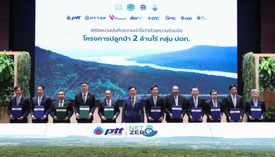 เมื่อเร็วๆนี้ นายบัณฑิต ธรรมประจำจิต ประธานเจ้าหน้าที่บริหาร และกรรมการผู้จัดการใหญ่ บริษัท ไทยออยล์ จำกัด (มหาชน) (ที่ 4 จากขวา) เข้าร่วมพิธีลงนามบันทึกความเข้าใจว่าด้วยความร่วมมือโครงการปลูกป่า 2 ล้านไร่ ของกลุ่มปตท. พร้อมผู้บริหารกลุ่ม ปตท. 7 บริษัท โดยมีนายจตุพร บุรุษพัฒน์ ปลัดกระทรวงทรัพยากรธรรมชาติและสิ่งแวดล้อม เป็นประธานในพิธี พิธีลงนามฯ ในครั้งนี้ มีจำนวน 3 ฉบับ ได้แก่ โครงการพัฒนาพื้นที่ปลูก บำรุงรักษา และระบบนิเวศป่าไม้ กับกรมป่าไม้ โครงการพัฒนาพื้นที่ปลูก บำรุงรักษา และระบบนิเวศป่าไม้ กับกรมอุทยานแห่งชาติสัตว์ป่า และพันธุ์พืช และโครงการปลูกและบำรุงรักษาป่าชายเลน เพื่อประโยชน์จากคาร์บอนเครดิต กับกรมทรัพยากรทางทะเลและชายฝั่ง พิธีดังกล่าวจัดขึ้น ณ ห้องประชุม ชั้น 2 ปตท. สำนักงานใหญ่