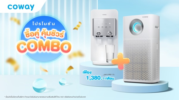กรุงเทพฯ – บริษัท โคเวย์ (ประเทศไทย) จำกัด แบรนด์เครื่องกรองน้ำและเครื่องฟอกอากาศอันดับ 1 จากประเทศเกาหลีใต้ซึ่งดำเนินงานภายใต้วิสัยทัศน์ “Best Life Solution Company” จัดโปรโมชันพิเศษแบบ Combo แพ็กคู่คุ้มชัวร์ วันนี้ถึง 27 พฤษภาคม 2566 นี้ เพื่อให้ทุกคนได้ดื่มน้ำสะอาดและสูดอากาศบริสุทธิ์เต็มปอดอย่างคุ้มค่าสูงสุด เพียง Subscribe เครื่องกรองน้ำรุ่น Neo Plus (ราคาปกติเดือนละ 790 บาท) และจับคู่กับเครื่องฟอกอากาศรุ่น Strom (ราคาปกติเดือนละ 790 บาท) ภายในพฤษภาคมนี้ โคเวย์จัดให้ในราคาพิเศษเพียงเดือนละ 1,380 บาทเท่านั้น ฟรีค่าติดตั้ง และโคเวย์พร้อมดูแลคุณตลอดระยะเวลา