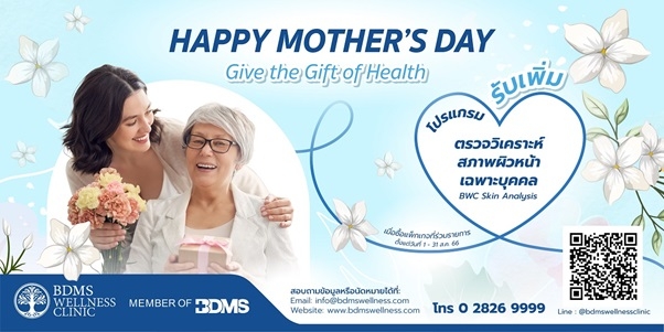ปีนี้… มีของขวัญวันแม่สุดพิเศษให้กับคุณแม่ที่คุณรักกันรึยัง? บอกรักแม่ด้วยโปรแกรมเพื่อสุขภาพ จาก BDMS Wellness Clinic เชิญชวนคุณแม่และครอบครัวที่คุณรักมาตรวจสุขภาพกับแพ็กเกจที่ร่วมรายการ พร้อมรับทันที คูปองตรวจวิเคราะห์สภาพผิวหน้า (BWC Skin Analysis) มูลค่า 1,200 บาท เมื่อซื้อโปรแกรมที่ร่วมรายการ ตั้งแต่วันที่ 1 – 31 สิงหาคม 2566 อาทิ