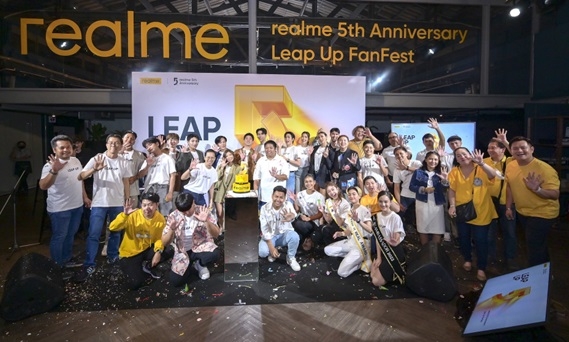 กรุงเทพ – realme (เรียลมี) แบรนด์เทคโนโลยีเพื่อคนรุ่นใหม่ที่เติบโตเร็วที่สุดในโลก จัดงานเฉลิมฉลองก้าวสู่ปีที่ 5 ภายใต้คอนเซ็ปต์ “LEAP UP” ประกาศความสำเร็จของธุรกิจตลอดเวลา 5 ปี พร้อมก้าวสู่แบรนด์ผู้นำตลาดสมาร์ตโฟนที่ตอบโจทย์คนรุ่นใหม่ทั่วโลกอย่างแท้จริง ฝ่าย realme Thailand ขานรับด้วยการจัดกิจกรรมเฉลิมฉลองแบบปูพรมทุกช่องทาง ทั้งหน้าร้าน ออฟไลน์ และการร่วมมือกับสถาบันการศึกษา เพื่อส่งเสริมให้หนุ่มสาวรุ่นใหม่ได้ปลดล็อกศักยภาพของตนเอง ฉายแสงแห่งความโดดเด่น และนำเสนอความเป็นตัวของตัวเองอย่างสร้างสรรค์ในเวอร์ชันที่ดีที่สุดอีกทั้งยังจัดงาน “realme 5th Anniversary Leap Up FanFest” ขึ้นที่ Factoria BKK เพื่อเป็นการขอบคุณสาวกเรียลมีในประเทศไทยและมิตรสหายสื่อมวลชนที่ร่วมนำเสนอข่าวสารของแบรนด์ด้วยดีมาโดยตลอด ภายในงานได้มีเซอร์ไพรส์กับการได้ชมภาพยนตร์สั้นเรื่อง “Chasing The Sun” กำกับโดยผู้กำกับรุ่นใหม่ ดีกรีรางวัลฮอลลีวูด Jeremy Cloe โดยเป็นภาพยนตร์สั้นที่เรียลมีจัดเตรียมมาเพื่อเฉลิมฉลองในเทศกาลพิเศษนี้โดยเฉพาะและยังได้รับแรงบันดาลใจจากเรื่องราวจริงจาก realme Community (ข้อมูลเพิ่มเติม : https://www.facebook.com/realmeTH/posts/pfbid0hZbafvDcCLTdACRTtQiqEx8MtFkENqj524UJQFCia6n2WCUwhWPNAzyzbJ9RumPVl) การพูดคุยแชร์ประสบการณ์ในการใช้มือถือ realme