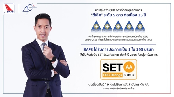 นอกจากนี้ บาฟส์ ยังได้รับคะแนนการประเมินการกำกับดูแลกิจการในระดับ 5 ดาว หรือ “ดีเลิศ” (Excellent) ต่อเนื่องเป็นปีที่ 15 จากโครงการสำรวจการกำกับดูแลกิจการบริษัทจดทะเบียนไทย (CGR) ประจำปี 2566 ซึ่งจัดขึ้นโดยสมาคมส่งเสริมสถาบันกรรมการบริษัทไทย (IOD) และได้รับคะแนนสูงสุด 100 คะแนนเต็ม หรือ “5 เหรียญ” จากโครงการประเมินคุณภาพการจัดประชุมสามัญผู้ถือหุ้น ของบริษัทจดทะเบียนในตลาดหลักทรัพย์แห่งประเทศไทย (AGM Checklist) จัดขึ้นโดยสมาคมส่งเสริมผู้ลงทุนไทยและสภาธุรกิจตลาดทุนไทย ซึ่งล้วนเป็นเครื่องการันตีถึงมาตรฐานการทำงานและความมุ่งมั่นของบริษัทในการดำเนินธุรกิจโดยยึดมั่นหลักการกำกับดูแลกิจการที่ดีมาอย่างต่อเนื่อง ตลอด 40 ปีที่ผ่านมา บาฟส์ ส่งเสริมองค์กรให้มีการกำกับดูแลกิจการที่ดีเยี่ยม ปฏิบัติต่อผู้มีส่วนได้เสียทุกฝ่ายอย่างเท่าเทียมกัน และส่งเสริมให้ผู้ถือหุ้นได้มีส่วนร่วมในการบริหารงาน ให้ความสำคัญกับดำเนินธุรกิจด้วยความรับผิดชอบต่อสังคม และผู้มีส่วนได้ส่วนเสียทุกภาคส่วน สร้างคุณค่าอย่างยั่งยืนภายใต้หลักธรรมาภิบาล โดยมีเป้าหมายการดำเนินธุรกิจให้เติบโตและแข็งแกร่งไปพร้อมกับสังคม ตามวิสัยทัศน์ของบาฟส์ “เติมเต็มโลกด้วยธุรกิจที่ยั่งยืน” #BAFSเติมเต็มโลกด้วยธุรกิจที่ยั่งยืน