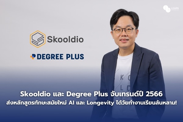Skooldio และ Degree Plus ผู้นำด้านบริการทักษะดิจิทัลและทักษะการเรียนรู้ตลอดชีวิต ในเครือ LEARN Corporation ผู้ให้บริการพัฒนาการเรียนรู้ทุกช่วงวัย ทั้งในกลุ่มวัยเรียนและวัยทำงาน โดยในกลุ่มวัยทำงาน หรือ Professional & Skills ที่นำทัพโดย Skooldio ส่งหลักสูตรทักษะสมัยใหม่กลุ่ม AI สำหรับทุกคน และกลุ่ม Longevity & Well-being เข้าสู่ตลาดในปี 2566 ที่ผ่านมา และได้รับกระแสตอบรับอย่างล้นหลามจากวัยทำงาน สอดรับกับเทรนด์ AI ที่จะเข้ามาเปลี่ยนแปลงกับในสายอาชีพ และกระแส Lifelong Learning ในสังคม