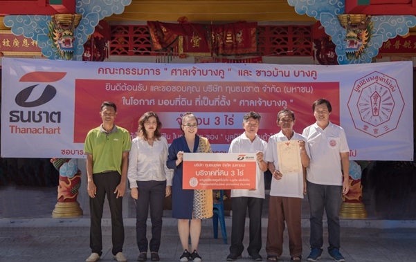 นางณัฐกาณจน์ ภุมารินธนกาญน์ ผู้แทน บริษัท ทุนธนชาต จำกัด (มหาชน) หรือ TCAP ทำพิธีมอบที่ดินจำนวน 3 ไร่ บริเวณตำบลเกาะแก้ว อำเภอเมืองฯ จังหวัดภูเก็ต ให้แก่ มูลนิธิบางคูเต้าโบ้เก้ง จ.ภูเก็ต เพื่อใช้เป็นที่ตั้งศาลเจ้าซำก๊วนไต่เต่ (ซำก้ายก้อง) บ้านบางคู โดยมี นายสาคร ลิ่มสกุล ประธานกรรมการมูลนิธิบางคูเต้าโบ้เก้ง พร้อมคณะเป็นผู้รับมอบ