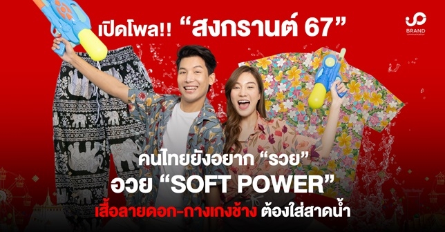 เปิดโพล! “สงกรานต์ยุคใหม่” ปี 2567 สำรวจโดย บริษัท แบรนด์ คอมมิวนิเคชัน จำกัด คนไทยเน้นอยู่กับครอบครัว ยังกลัวโควิด อยากใกล้ชิด “ลิซ่า BlackPink” พร้อมอยากขอพรให้ถูก “ล็อตเตอรี่” ชี้! “Soft Power” มาแรง เสื้อลายดอก-กางเกงช้าง ต้องใส่สาดน้ำ
