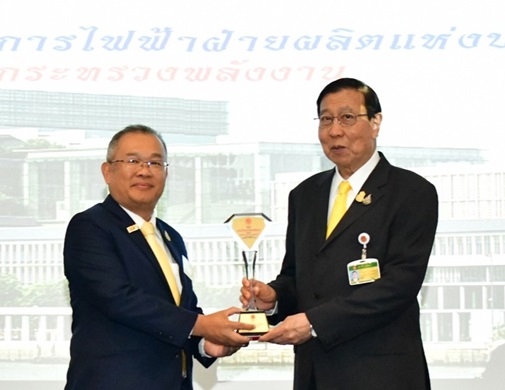 นายชัยวุฒิ หลักเมือง ผู้ช่วยผู้ว่าการบริหารจัดการความยั่งยืน เป็นผู้แทนการไฟฟ้าฝ่ายผลิตแห่งประเทศไทย (กฟผ.) เข้ารับรางวัลองค์กรเกียรติยศ จากศาสตราจารย์พิเศษพรเพชร วิชิตชลชัย ประธานวุฒิสภา ในพิธี