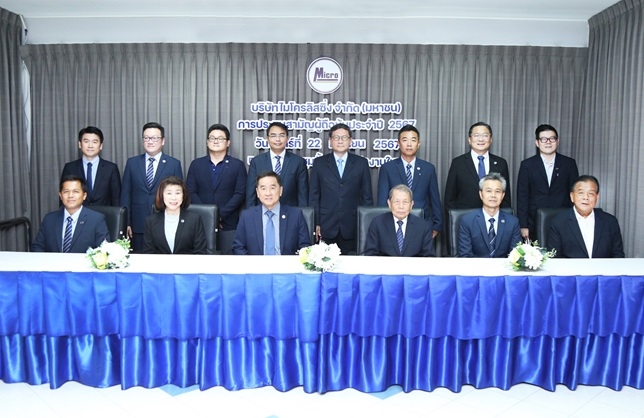 นายกริช อัมโภชน์ (แถวนั่งที่ 3 จากขวา) ประธานกรรมการ บริษัท ไมโครลิสซิ่ง จำกัด (มหาชน) หรือ MICRO และนายธรรมศักดิ์ อัชญาวัฒน์ (แถวนั่งที่ 3 จากซ้าย) กรรมการบริษัทในฐานะผู้ก่อตั้ง พร้อมด้วยคณะกรรมการ และคณะผู้บริหารของบริษัทฯ ถ่ายภาพเป็นที่ระลึกร่วมกันในงานประชุมสามัญผู้ถือหุ้นประจำปี 2567 ณ ห้องประชุม สำนักงานใหญ่ บมจ.ไมโครลิสซิ่ง จ.นครปฐม ในรูปแบบการประชุมผ่านสื่ออิเล็กทรอนิกส์ (E-AGM) เมื่อวันที่ 22 เมษายน 2567 ที่ผ่านมา โดยที่ประชุมฯ มีมติเห็นชอบทุกวาระตามที่คณะกรรมการเสนอ พร้อมเผยแผนธุรกิจในปี 2567 บริษัทได้กำหนดกลยุทธ์ที่เน้นการดูแลสภาพคล่องเป็นหลัก โดยให้ความสำคัญกับการคัดกรองคุณภาพของลูกหนี้ใหม่อย่างเข้มงวด พร้อมกับการรักษาพอร์ตลูกหนี้ที่มีคุณภาพสูงอย่างต่อเนื่อง