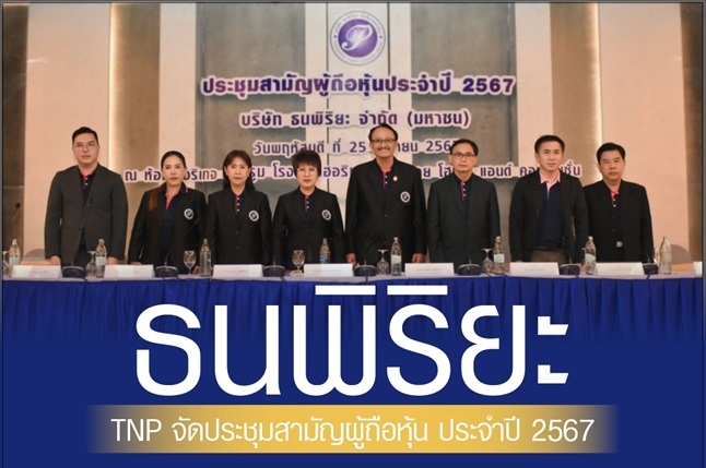 นายแพทย์พิษณุ ขันติพงษ์(ที่ 4 จากขวา) ประธานกรรมการ และ เภสัชกรหญิงอมร พุฒิพิริยะ (ที่ 4 จากซ้าย) รองกรรมการผู้จัดการ บริษัท ธนพิริยะ จำกัด (มหาชน) หรือ TNP ผู้ประกอบธุรกิจค้าปลีกและค้าส่งสินค้าอุปโภคบริโภคในจังหวัดเชียงราย พร้อมด้วยคณะกรรมการบริษัท และผู้บริหาร จัดงานประชุมสามัญผู้ถือหุ้น ประจำปี 2567 โดยมติที่ประชุมผ่านทุกวาระ ตามที่คณะกรรมการเสนอ พร้อมอนุมัติจ่ายปันผล ในอัตราหุ้นละ 0.085 บาท รวมเป็นจำนวนเงินทั้งสิ้น 68,000,000 บาท ซึ่งบริษัทฯได้จ่ายเงินปันผลระหว่างกาลไปแล้ว ในอัตราหุ้นละ 0.04 บาท หรือเท่ากับ 32,000,000 บาท เหลือจ่ายอีก 0.045 บาท รวม 36,000,000 บาท โดยกำหนดจ่ายวันที่ 24 พฤษภาคม 2567 ซึ่งอัตราเงินปันผลที่จ่ายเทียบกับกำไรสุทธิของงบการเงินเฉพาะกิจการปี 2566 หลังหักภาษีเงินได้นิติบุคคลและทุนสำรองต่างๆตามกฎหมาย เท่ากับร้อยละ 43.19 สอดคล้องกับนโยบายการจ่ายเงินปันผลของบริษัท เพื่อตอบแทนผู้ถือหุ้นที่ให้ความเชื่อมั่นตลอดมา พร้อมย้ำศักยภาพในการเติบโตของรายได้ 15% ตามแผนที่วางไว้ เดินหน้าขยายสาขาอย่างต่อเนื่อง เพื่อให้เข้าถึงกลุ่มลูกค้าอย่างครอบคลุม ด้วยผลิตภัณฑ์ที่ตอบสนองความต้องการได้อย่างหลากหลาย อีกทั้งดำเนินธุรกิจด้วยความใส่ใจ คำนึงถึงผู้มีส่วนได้ส่วนเสียทุกมิติ ณ ห้องเฮอริเทจ บอลลูม 1 โรงแรมเฮอริเทจ เชียงราย เมื่อเร็วๆนี้