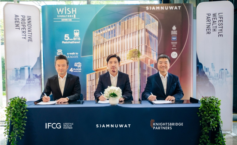 ร่วมเซ็นสัญญาแต่งตั้ง Master Agent โครงการวิช ซิกเนเจอร์ II มิดทาวน์ สยาม นายธารธร อักษรานุวัตร (กลาง) ประธานเจ้าหน้าที่บริหาร บริษัท สยามนุวัตร จำกัด, มร.คิงสตัน ไล (ที่ 1 จากขวา) ประธานเจ้าหน้าที่บริหาร บริษัท ไนท์สบริดจ์ พาร์ทเนอร์ จำกัด และ นายวิทูร เลิศพนมวรรณ (ที่ 1 จากซ้าย) ประธานเจ้าหน้าที่บริหาร บริษัท ไอเอฟซีจี จำกัด (มหาชน) ร่วมลงนามสัญญาแต่งตั้งให้ Knightsbridge Partners และ IFCG เป็น Master Agent ตัวแทนซื้อ-ขายอสังหาริมทรัพย์ ของโครงการวิช ซิกเนเจอร์ II มิดทาวน์ สยาม ซึ่งตั้งอยู่ใจกลางราชเทวีและสยามพารากอน มูลค่ารวมกว่า 1,000 ล้านบาท โดยความร่วมมือในครั้งนี้เป็นการเริ่มต้นของความร่วมมือที่มีศักยภาพระหว่าง บริษัท สยามนุวัตร จำกัด บริษัท ไนท์สบริดจ์ พาร์ทเนอร์ จำกัด และ บริษัท ไอเอฟซีจี จำกัด (มหาชน) ซึ่งงานดังกล่าวจัดขึ้นเมื่อเร็วๆ นี้