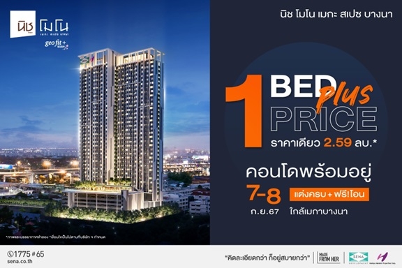 นิช โมโน (Niche MONO) เมกะ สเปซ บางนา คอนโดแต่งครบ พร้อมอยู่ จัดแคมเปญพิเศษ “1 Bed Plus ราคาเดียว 2.59 ลบ.” ในวันที่ 7-8 ก.ย.นี้เท่านั้น กับ 1 ห้องนอนพลัส ห้องใหญ่ พื้นที่เยอะกว่า กว้างถึง 35 ตร.ม. กั้นเป็นสัดส่วน จัดเต็มด้วย ฟรี! เฟอร์นิเจอร์ Geo Fit นวัตกรรมแนวความคิดจากญี่ปุ่น ฟรี! แอร์ ฟรี! ทุกค่าใช้จ่าย ณ วันโอน และมีที่จอดรถมากถึง 70%* อยู่บนทำเลศักยภาพติดถนนใหญ่ บางนา-ตราด ใกล้ทางด่วน ใกล้แหล่งทำงาน ครบทุกเรื่อง กิน เที่ยว ช้อป มีรถส่ง MRT ศรีเอี่ยม และ BTS บางนา* สามารถลงทะเบียนรับสิทธิพิเศษก่อนใครได้ที่ https://bit.ly/3TaGwu9 หรือแอดไลน์ @NicheMegaBangna (bit.ly/3Zr4l0W)