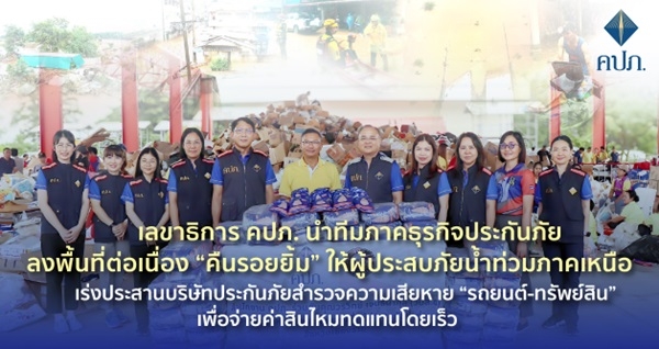 ในสังกัด เร่งประสานบริษัทประกันภัยในพื้นที่อย่างใกล้ชิดเพื่อให้บริการประชาชนและผู้เอาประกันภัยอย่างเต็มที่ โดยเฉพาะในด้านการสำรวจความเสียหายทรัพย์สินของผู้เอาประกันภัยเพื่อเร่งรัดการจ่ายค่าสินไหมทดแทนโดยเร็ว