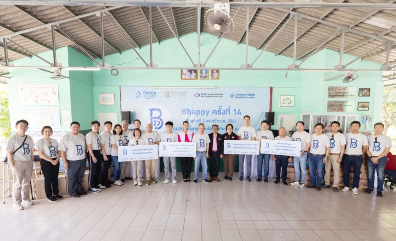 กรุงเทพประกันภัย โรงพยาบาลบำรุงราษฎร์ กรุงเทพประกันชีวิต และไอโออิ กรุงเทพ ประกันภัย ร่วมใจจัดกิจกรรม Bhappy ครั้งที่ 14 เพื่อพัฒนาคุณภาพชีวิตให้แก่ผู้ใช้บริการสถานคุ้มครองคนไร้ที่พึ่งทับกวาง จังหวัดสระบุรี เมื่อวันที่ 2 พฤศจิกายน 2567