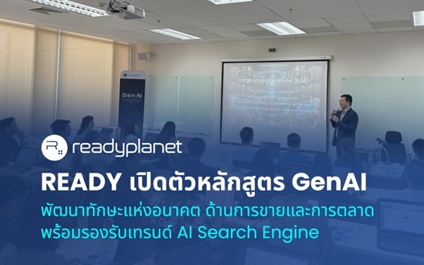 หลักสูตร GenAI for Sales and Marketing Masterclass จึงเป็นการสร้างโอกาสให้กับผู้เข้าร่วมอบรมได้เข้าใจถึงแนวทางในการนำ GenAI ไปใช้งานได้จริงในชีวิตประจำวันได้เป็นอย่างดี ขณะเดียวกัน READY ยังพร้อมให้การสนับสนุนในการพัฒนาศักยภาพของบุคลากร ให้สามารถนำเทคโนโลยี AI มาประยุกต์ใช้ในสายงานครอบคลุมทั้งด้านการขายและการตลาด อีกทั้งยังเป็นการเตรียมความพร้อมให้กับธุรกิจไทย ให้สามารถรับมือกับเทรนด์ AI Search Engine ซึ่งจะเป็นหัวใจสำคัญในการแข่งขันของโลกธุรกิจแห่งอนาคต สำหรับองค์กรที่สนใจเข้าร่วมอบรมในหลักสูตร GenAI for Sales and Marketing Masterclass สามารถสอบถามข้อมูลเพิ่มเติมได้ที่ 02-016-6789 (24ชม.)