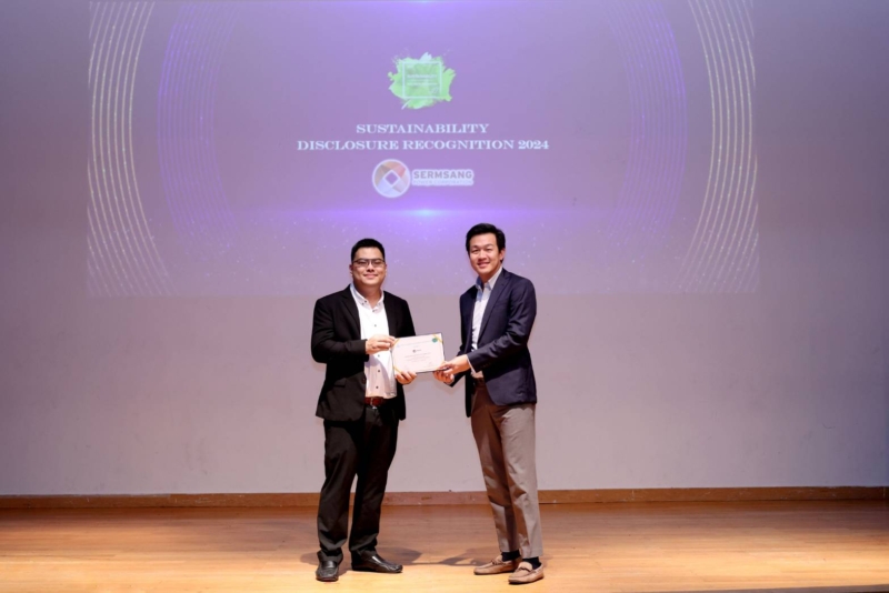 นายชยุตม์ หลีหเจริญกุล (ขวา) ประธานเจ้าหน้าที่บริหารสายงานบัญชีและการเงิน บริษัท เสริมสร้าง พาวเวอร์ คอร์ปอเรชั่น จำกัด (มหาชน) (SSP) เป็นตัวแทนบริษัทฯ เข้ารับรางวัล (ประกาศเกียรติคุณ) “Sustainability Disclosure Recognition 2024” จาก นายวรณัฐ เพียรธรรม (ซ้าย) ผู้อำนวยการสถาบันไทยพัฒน์ ในพิธีมอบรางวัลการเปิดเผยข้อมูลความยั่งยืนประจำปี 2567 ซึ่งรางวัลดังกล่าว สะท้อนให้เห็นถึงความมุ่งมั่นของบริษัทฯ จากการดำเนินธุรกิจผลิตไฟฟ้าด้วยพลังงานทดแทนซึ่งช่วยสร้างความยั่งยืนให้แก่สังคม ตลอดจนตระหนักและให้ความสำคัญกับการเผยแพร่ข้อมูลการดำเนินงาน โดยครอบคลุมทั้งด้านเศรษฐกิจ สังคม สิ่งแวดล้อม หรือ ESG (Environmental, Social and Governance) และคำนึงถึงผู้มีส่วนได้เสีย อันเป็นประโยชน์ต่อทุกภาคส่วน ตลอดจนมุ่งเน้นการพัฒนาองค์กร เพื่อสร้างความเชื่อมั่นและความมั่นคงด้านพลังงานในระยะยาวต่อไป งานดังกล่าวจัดขึ้น ณ หอศิลปวัฒนธรรมแห่งกรุงเทพฯ เมื่อเร็วๆ นี้