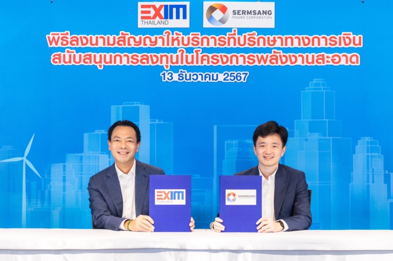 นับเป็นครั้งแรกของการเปิดตั วบริการด้านวาณิชธนกิจของ EXIM BANK ในฐานะสถาบันการเงินเฉพาะกิ จภายใต้การกำกับดู แลของกระทรวงการคลัง ภายใต้บทบาท Green Development Bank โดยแตกต่างจากสถาบันการเงินอื่น กล่าวคือ EXIM BANK มุ่งเน้นให้คำปรึกษาทางการเงิ นเพื่อตอบสนองความต้องการของลู กค้า ศึกษาความเป็นไปได้ของโครงการ จัดหาเงินทุนสำหรับโครงการ รวมถึงค้ำประกันหุ้นกู้ (Bond Guarantee) แก่ผู้ประกอบธุรกิจที่คำนึงถึ งสิ่งแวดล้อม สังคม และการกำกับดูแลกิจการที่ดี (Environmental, Social, and Governance : ESG) โดยใช้จุดแข็งของธนาคารที่มี ความเชี่ยวชาญด้านการให้บริ การทางการเงินเพื่อขับเคลื่ อนการค้าการลงทุนที่เป็ นประโยชน์ต่อการพัฒนาทั้งในระดั บประเทศและระดับโลก ท่ามกลางความไม่แน่ นอนของเศรษฐกิจโลกที่อาจส่ งผลกระทบต่อเศรษฐกิจและภาคการส่ งออกของไทย ทั้งนี้ ในปี 2567 EXIM BANK ได้รับจัดอันดับเครดิ ตภายในประเทศระยะยาวที่ AAA(tha) แนวโน้มอันดับเครดิตมีเสถียรภาพ (Stable Outlook) ซึ่งเป็นระดับสูงสุ ดของประเทศไทย ต่อเนื่องเป็นปีที่ 19 ขณะที่กลุ่มเสริมสร้าง พาวเวอร์ คอร์ปอเรชั่น เป็นผู้ประกอบการพลังงานทดแทนชั้ นนำของไทยที่มีศักยภาพและมี การลงทุนอย่างต่อเนื่อง ที่ผ่านมากลุ่ม SSP ประสบความสำเร็จในการลงทุนด้ านโครงการพลังงานสะอาดทั้ งในประเทศและต่างประเทศ กำลังผลิตรวมกว่า 280 เมกะวัตต์ และตั้งเป้าหมายกำลังการผลิ ตรวมเติบโตกว่า 1,000 เมกะวัตต์ภายในปี 2575 สอดคล้องกับแผนพัฒนาพลั งงานทดแทนและพลังงานทางเลื อกของไทย